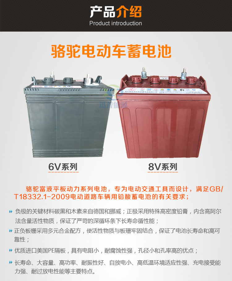 | 應(yīng)用領(lǐng)域: | 高爾夫球車用蓄電池、觀光游覽車蓄電池、巡邏車蓄電池、流動警務(wù)車用蓄電池、升降平臺蓄電池、電動車用電瓶等 |